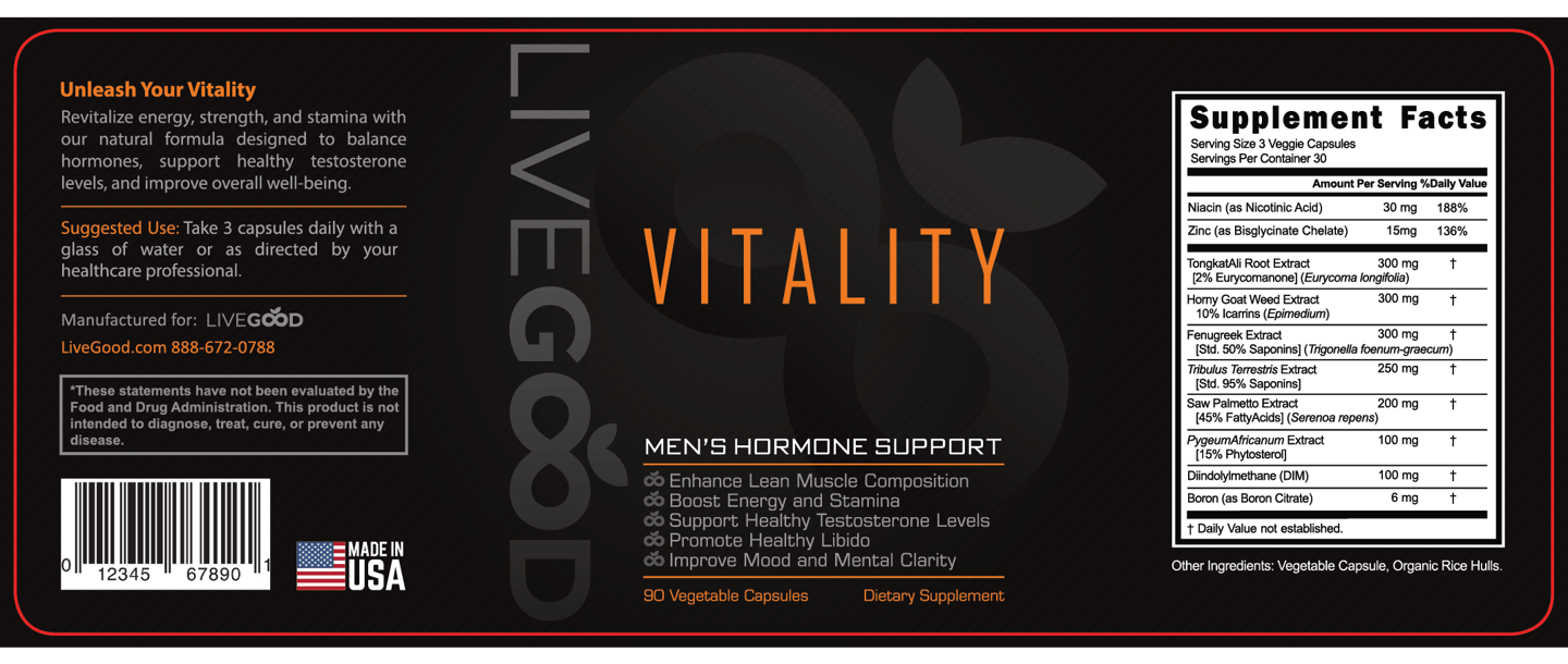LiveGood’s VITALITY is your go-to formula for enhancing energy, building strength, and maintaining stamina. Designed to support healthy testosterone levels and improve overall well-being, this advanced blend helps you perform at your best—every single day.